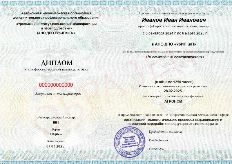 Да, дипломы и удостоверения оформляются в соответствии с действующим законодательством РФ. Документы печатаются на специальных бланках, заверяются печатью АНО ДПО «УрИПКиП».