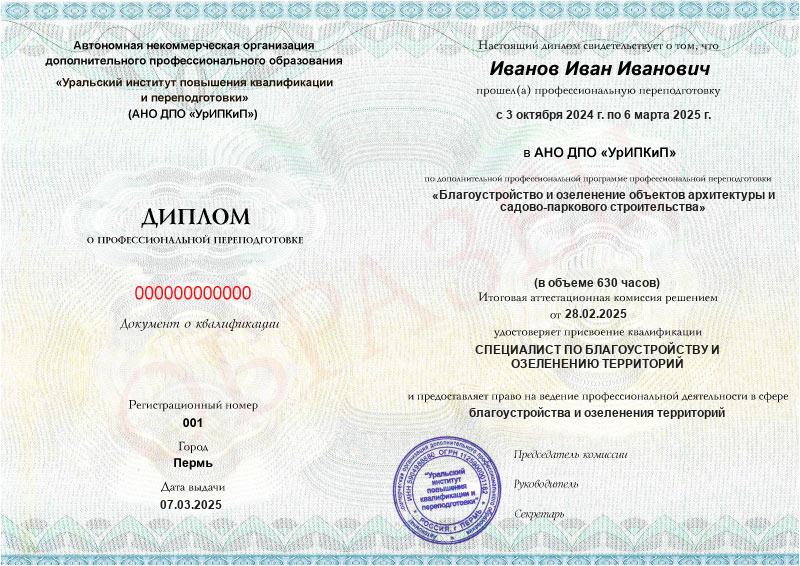 Да, дипломы и удостоверения оформляются в соответствии с действующим законодательством РФ. Документы печатаются на специальных бланках, заверяются печатью АНО ДПО «УрИПКиП».