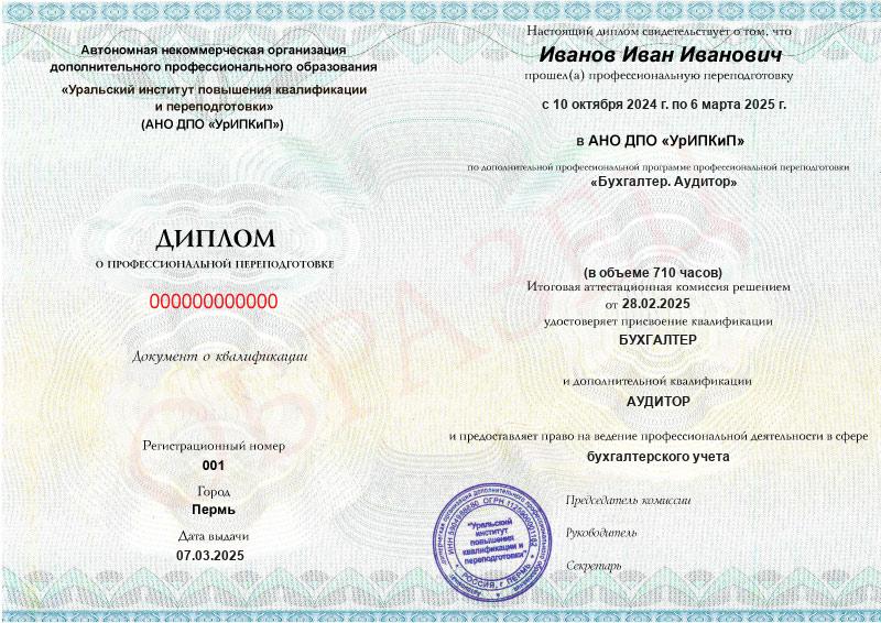 На курсе вы получите диплом о профессиональной переподготовке с присвоением сразу двух квалификаций: бухгалтер и аудитор.