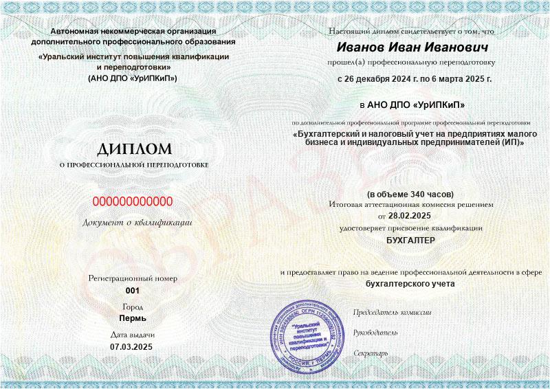 Да, дипломы и удостоверения оформляются в соответствии с действующим законодательством РФ. Документы печатаются на специальных бланках, заверяются печатью АНО ДПО «УрИПКиП».