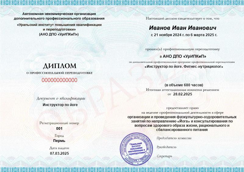 Инструктор по йоге. Фитнес-нутрициолог (680ч)