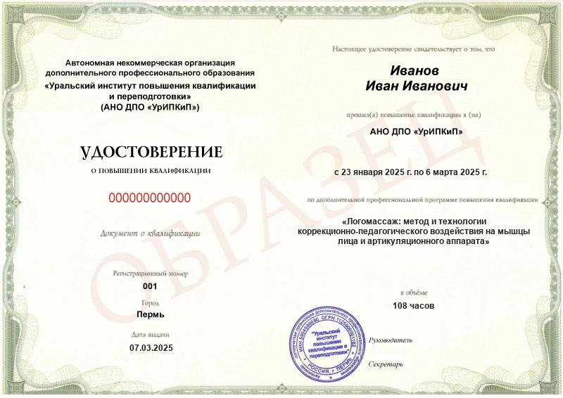 - Образец удостоверения о повышении квалификации.