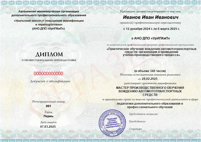 Заполненные образцы выдаваемых документов есть в описании учебных курсов и на странице «Лицензия. Документы», а также на главной странице официального сайта АНО ДПО «УрИПКиП».