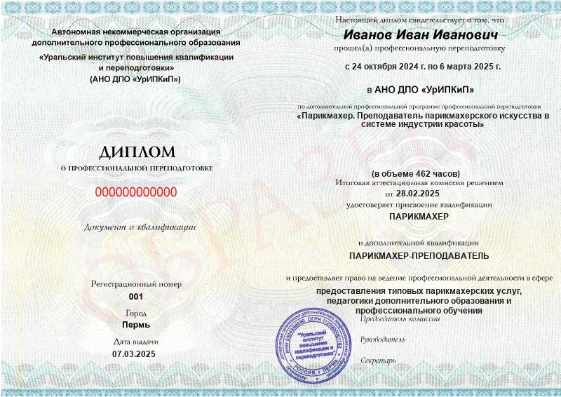 • 2 квалификации: Парикмахер + Парикмахер-преподаватель