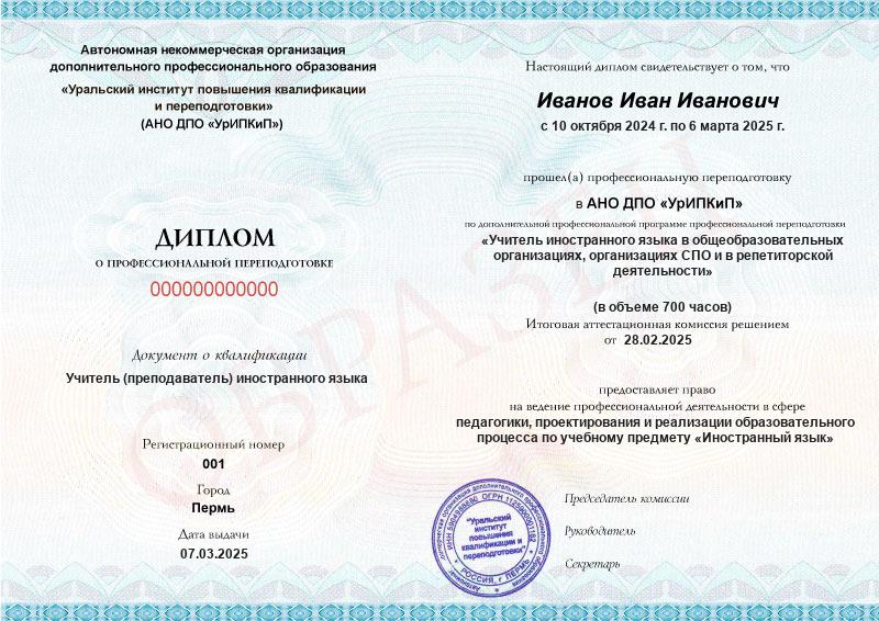 Курс обучения Учитель иностранного языка в общеобразовательных организациях, организациях СПО и в репетиторской деятельности (700ч)
