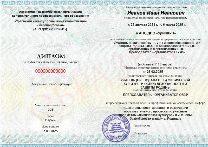 - Образец диплома о профессиональной переподготовке.